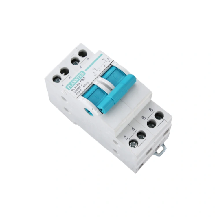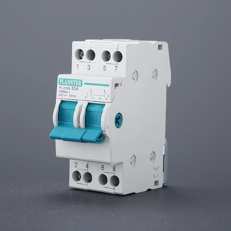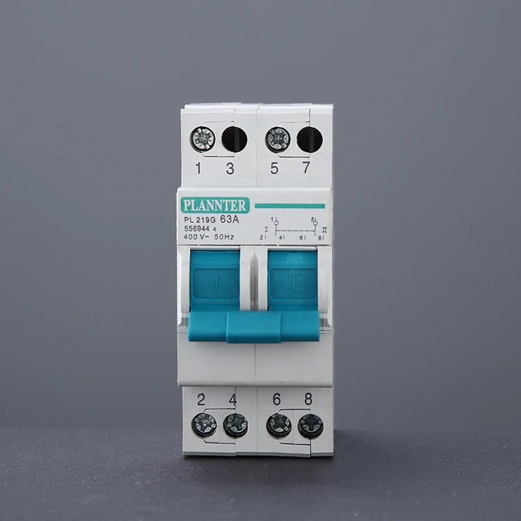 The Manual Conversion Interlock Circuit Breaker with rated current 40A/63A is installed by DIN standard rail (35×7.5), which is convenient and safe for wiring, and the shell is made of PA66 injection molding, which has high flame retardant property. And it has four functions of connecting, disconnecting, switching and isolating. Used for on-off and switching, free switching between two power supplies to connect and disconnect the power supply. Manual Conversion Interlock Circuit Breaker is widely used in hospitals, hotels, shopping malls, banks, chemical industry, high-rise buildings, fire fighting and other places where power outage is not permitted, and is also suitable for generators, generator sets, wind power generation, solar power generation industry, to ensure continuous and safe operation of power.