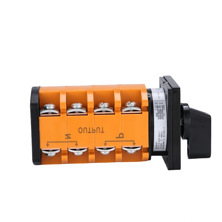 This switch is a robust electrical device used to realize the changeover of power supply and load. Mechanically, it consists of a rotating shaft, cam, contact seat, positioning mechanism, and a handle. When the handle is rotated to different gears, the shaft turns the cam, connecting or disconnecting specific contacts to control the circuit.